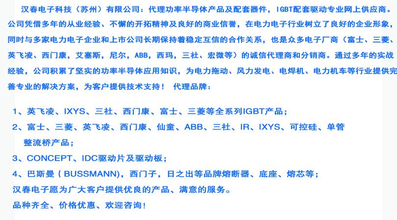 您現(xiàn)在所在位置:首頁(yè) > 產(chǎn)品中心 > 德國(guó)英飛凌 > IGBT模塊 > 正文